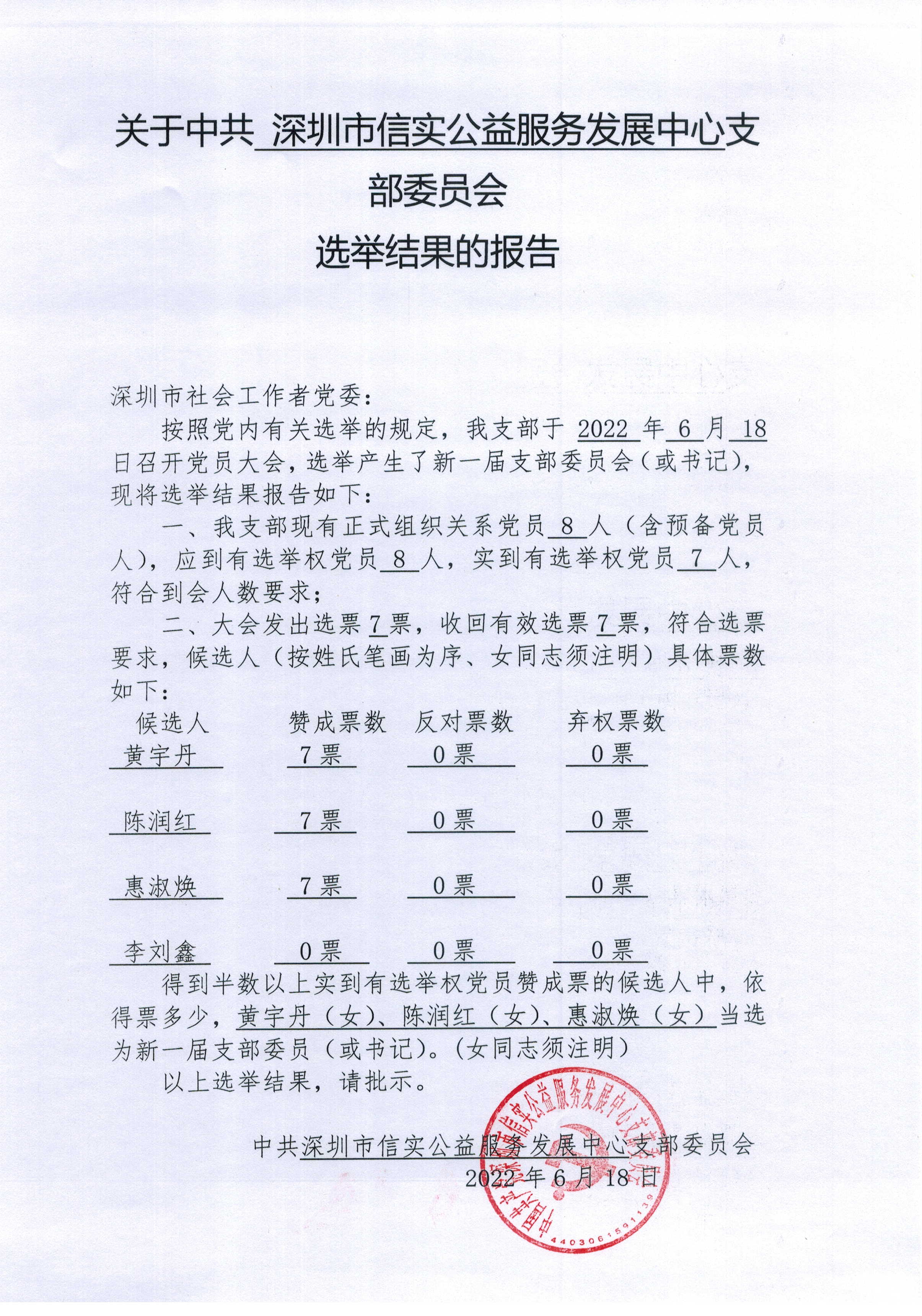 【公示】关于中共深圳市信实公益服务发展中心党支部委员会选举结果报告