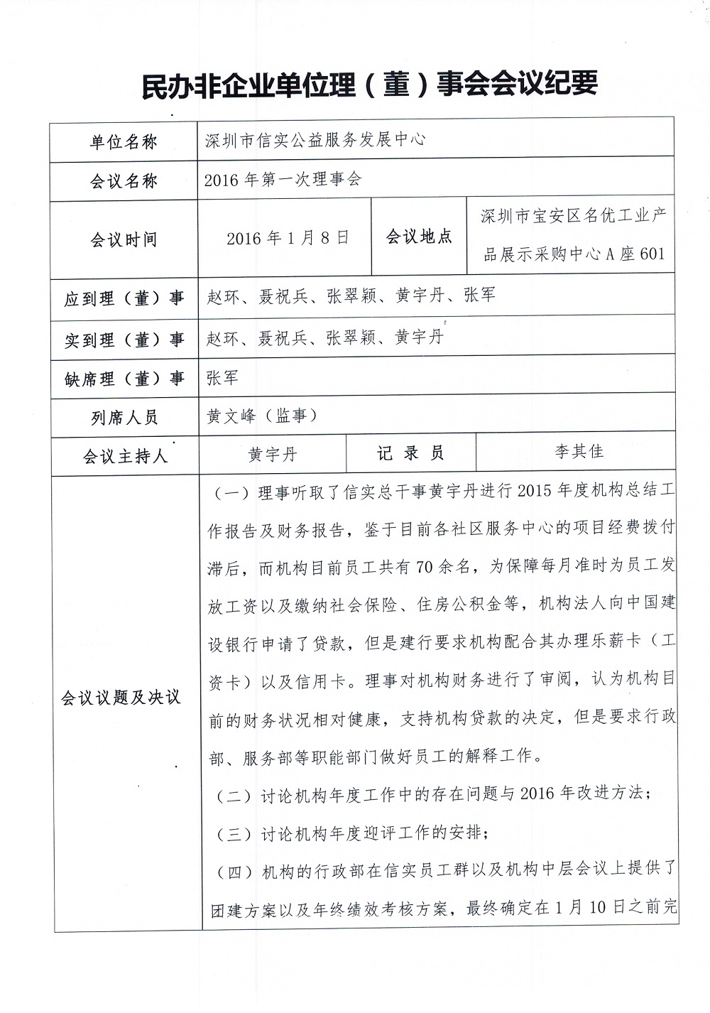 2016年机构第一次理事会会议纪要