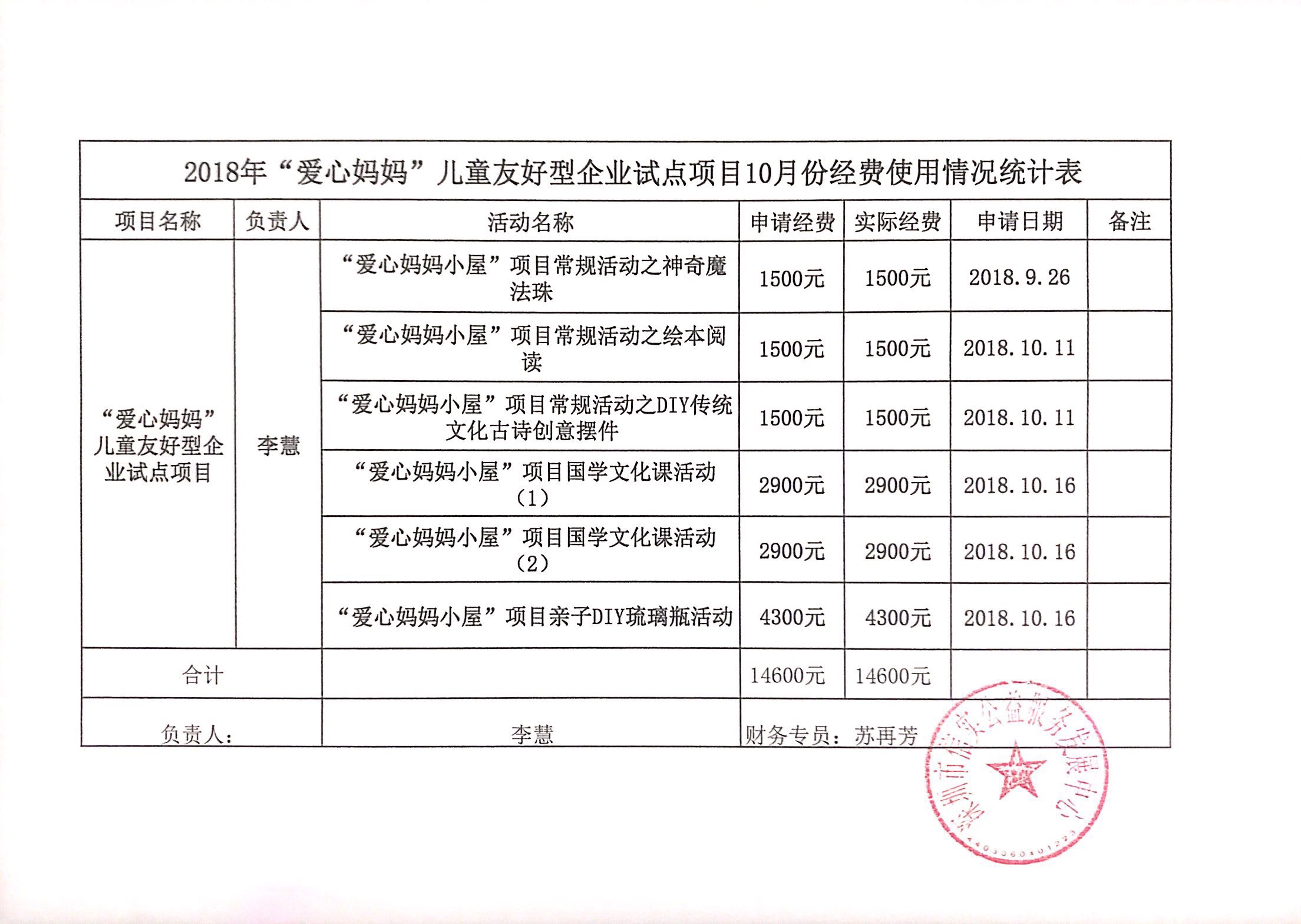 【财务公示】塘尾社区“爱心妈妈小屋”儿童友好型社区企业试点项目10月份经费支出表