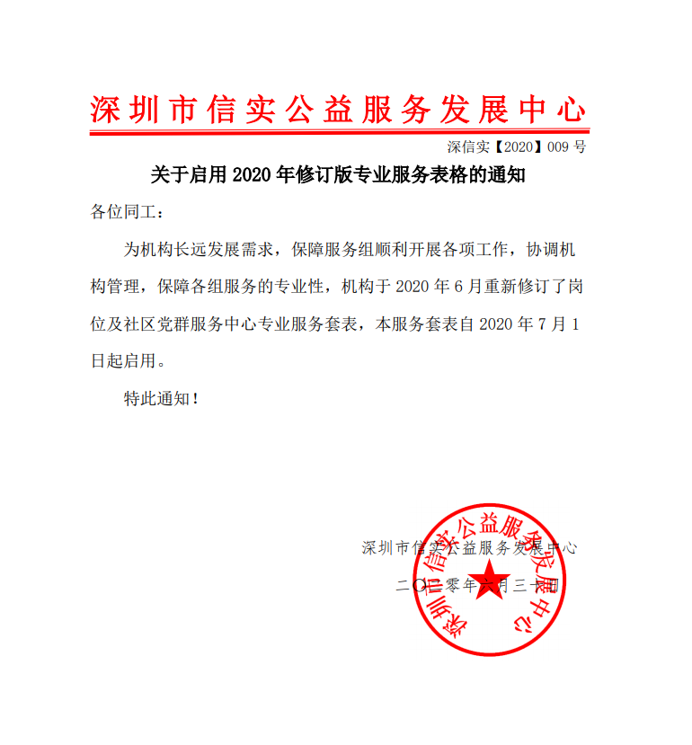 关于启用2020年修订版专业服务表格的通知 深信实【2020】009号
