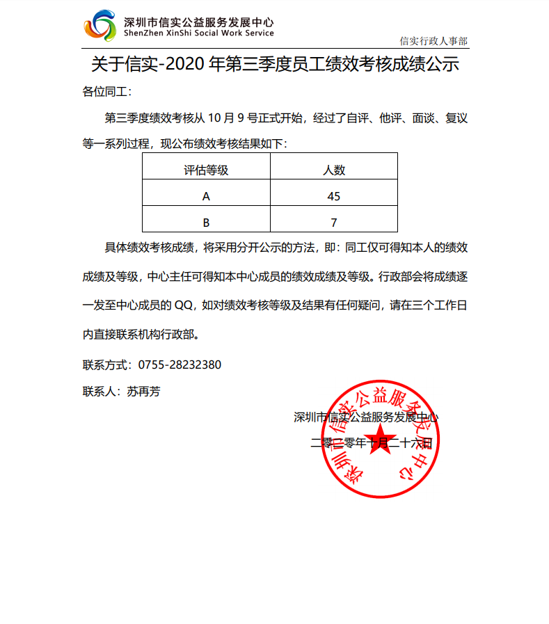 信实公益-2020年第三季度员工绩效考核成绩公示