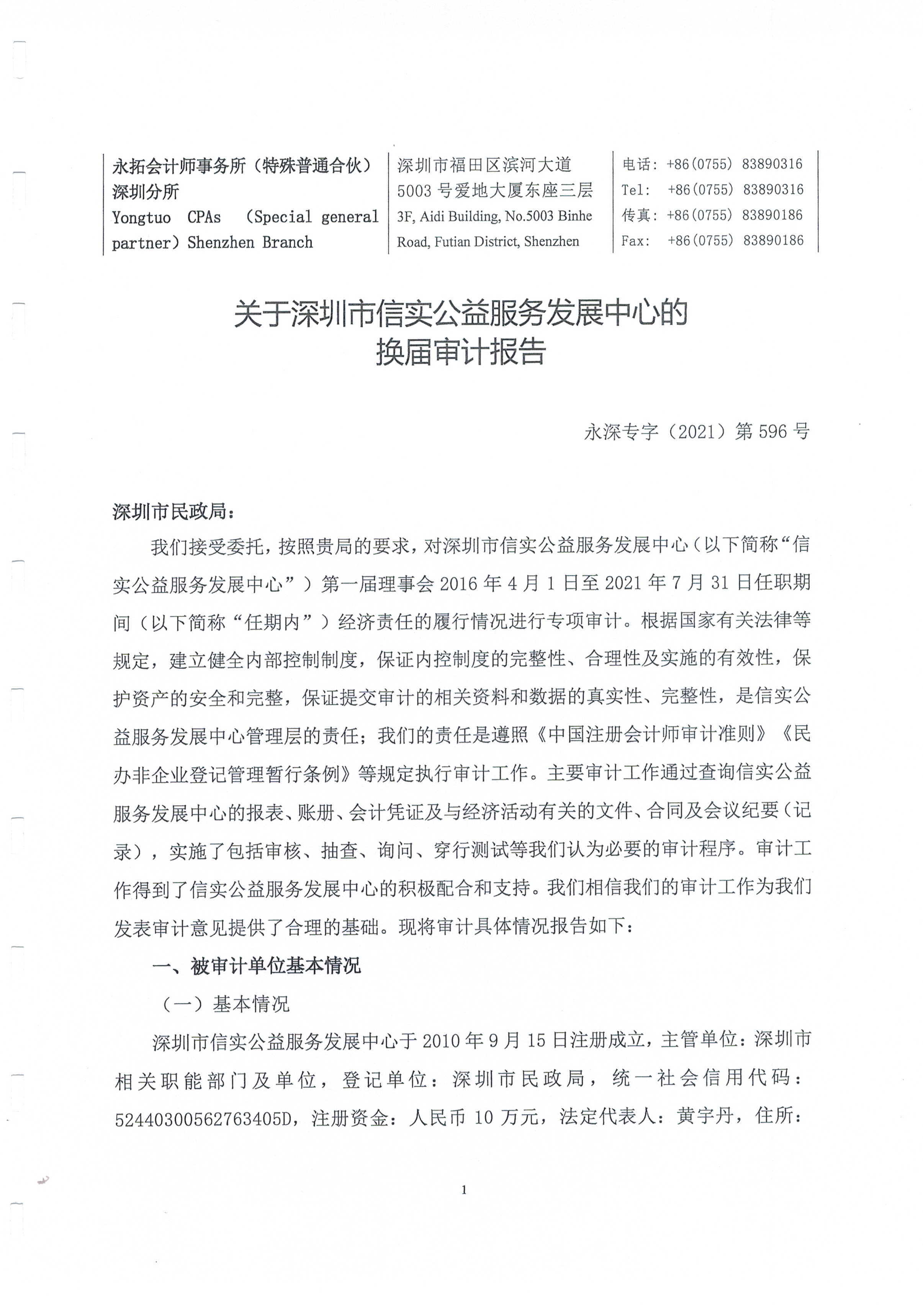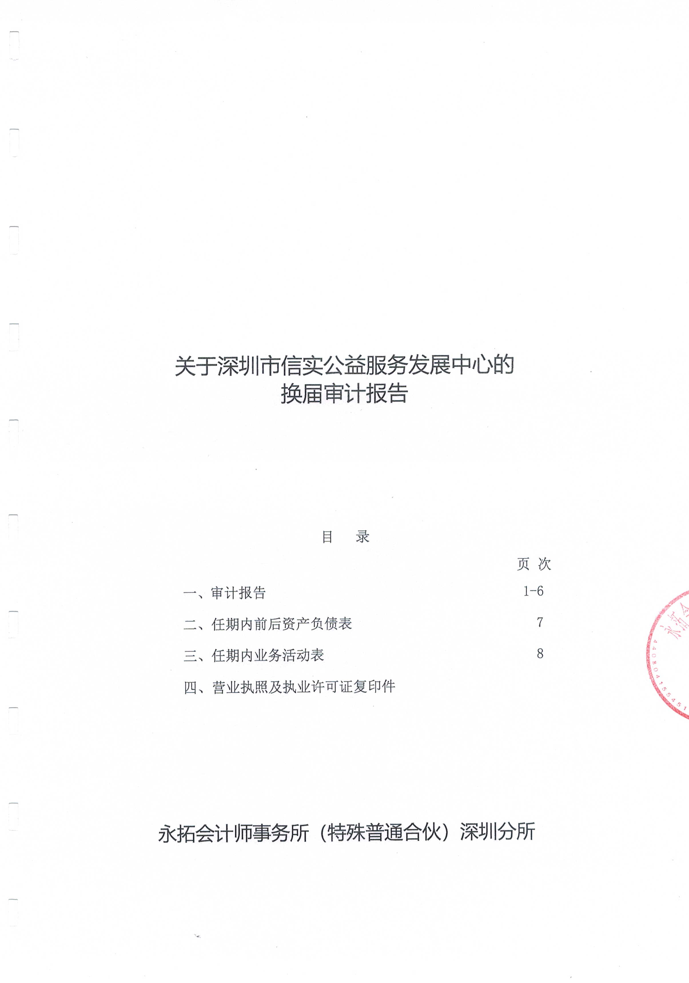 【公示】关于深圳市信实公益服务发展中心的换届审计报告公示