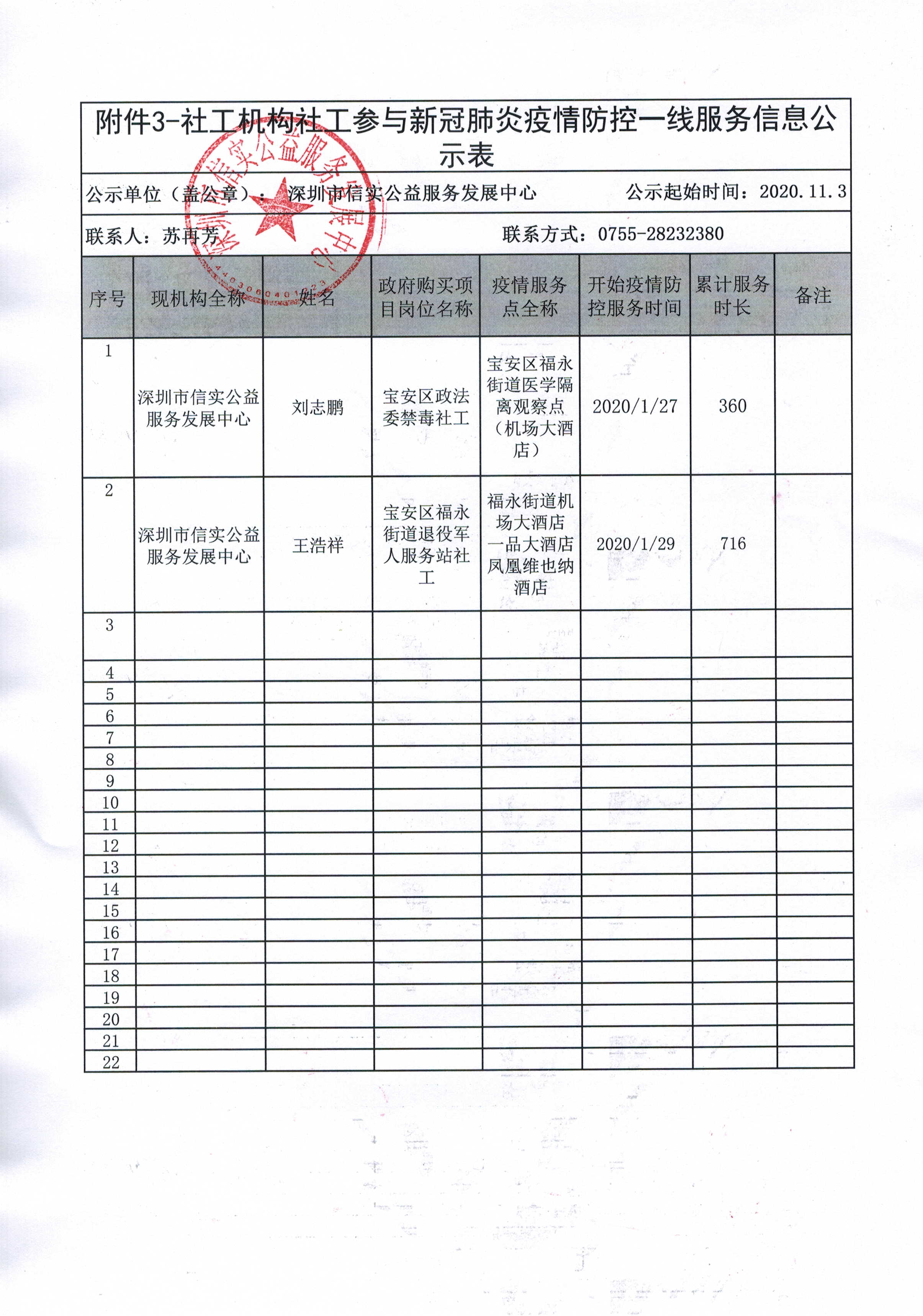 社工机构社工参与新冠肺炎疫情防控一线服务公示表