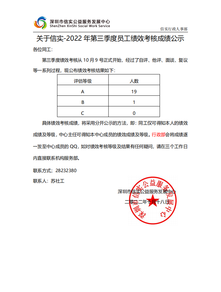 信实公益-2022年第三季度员工绩效考核成绩公示