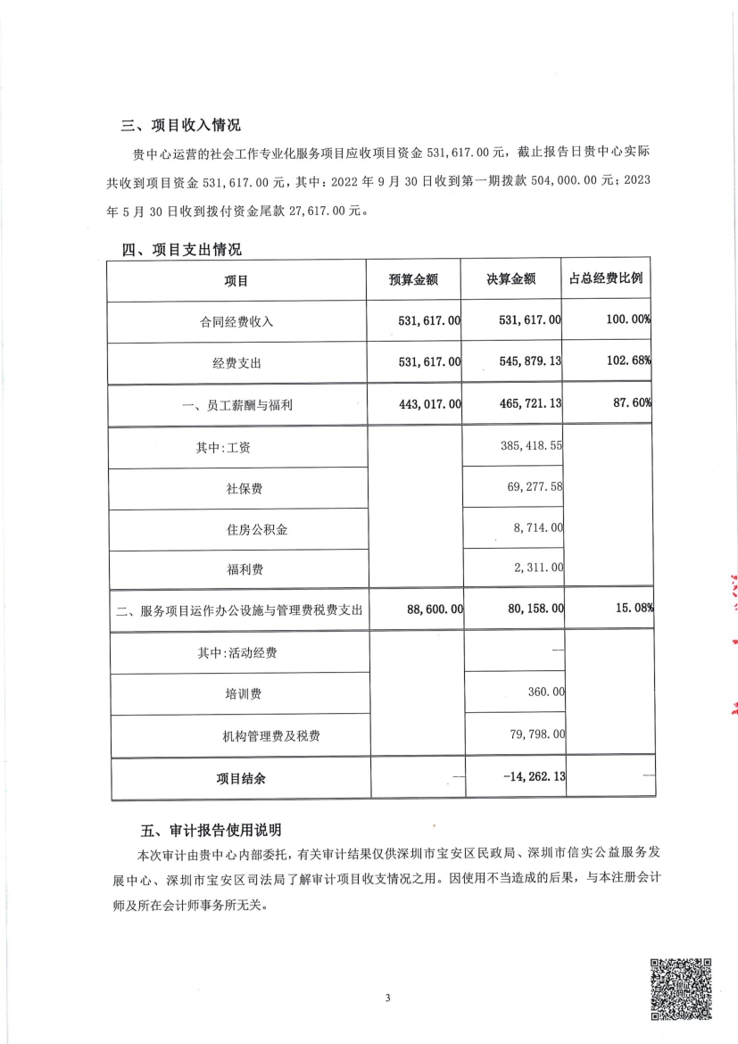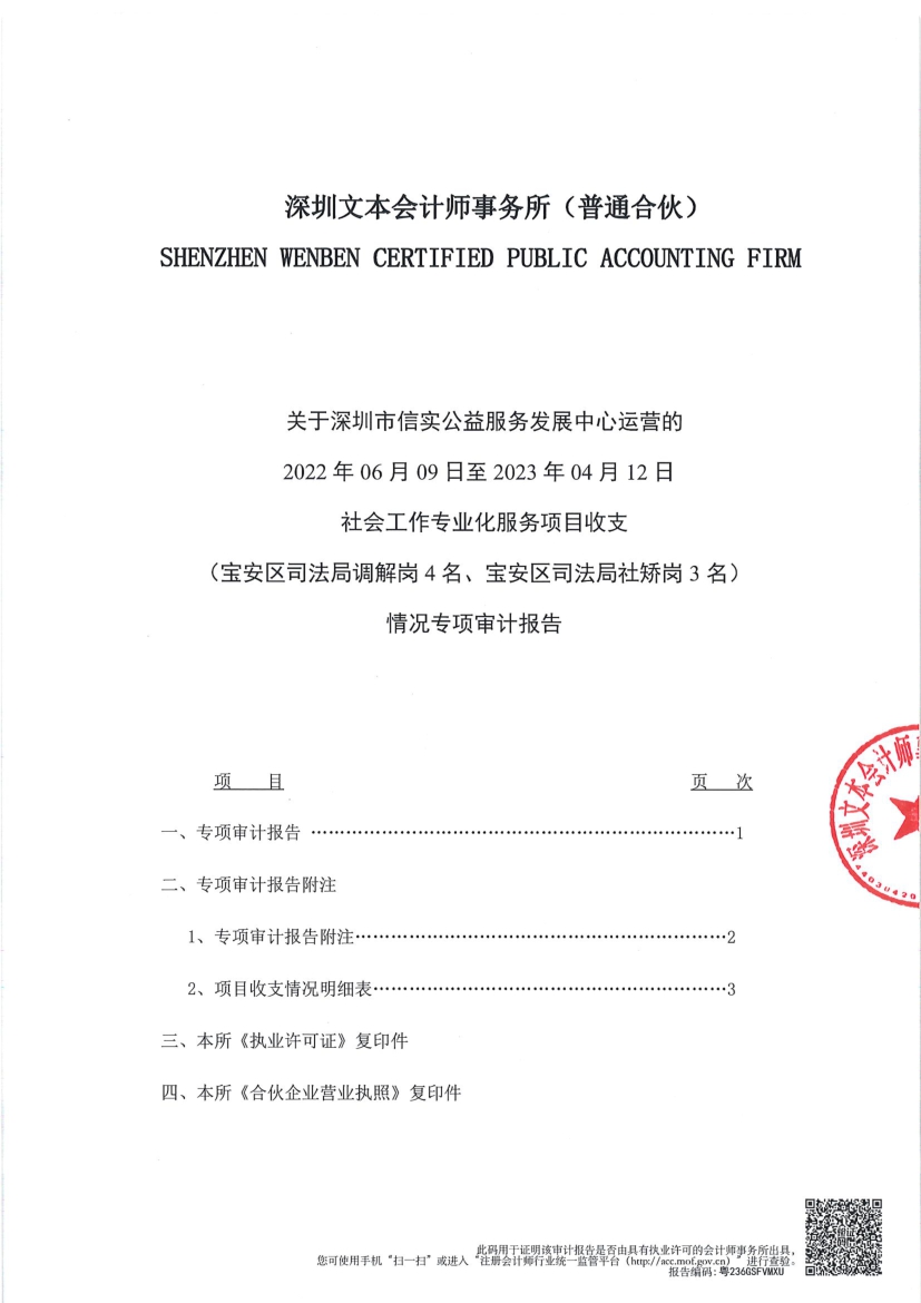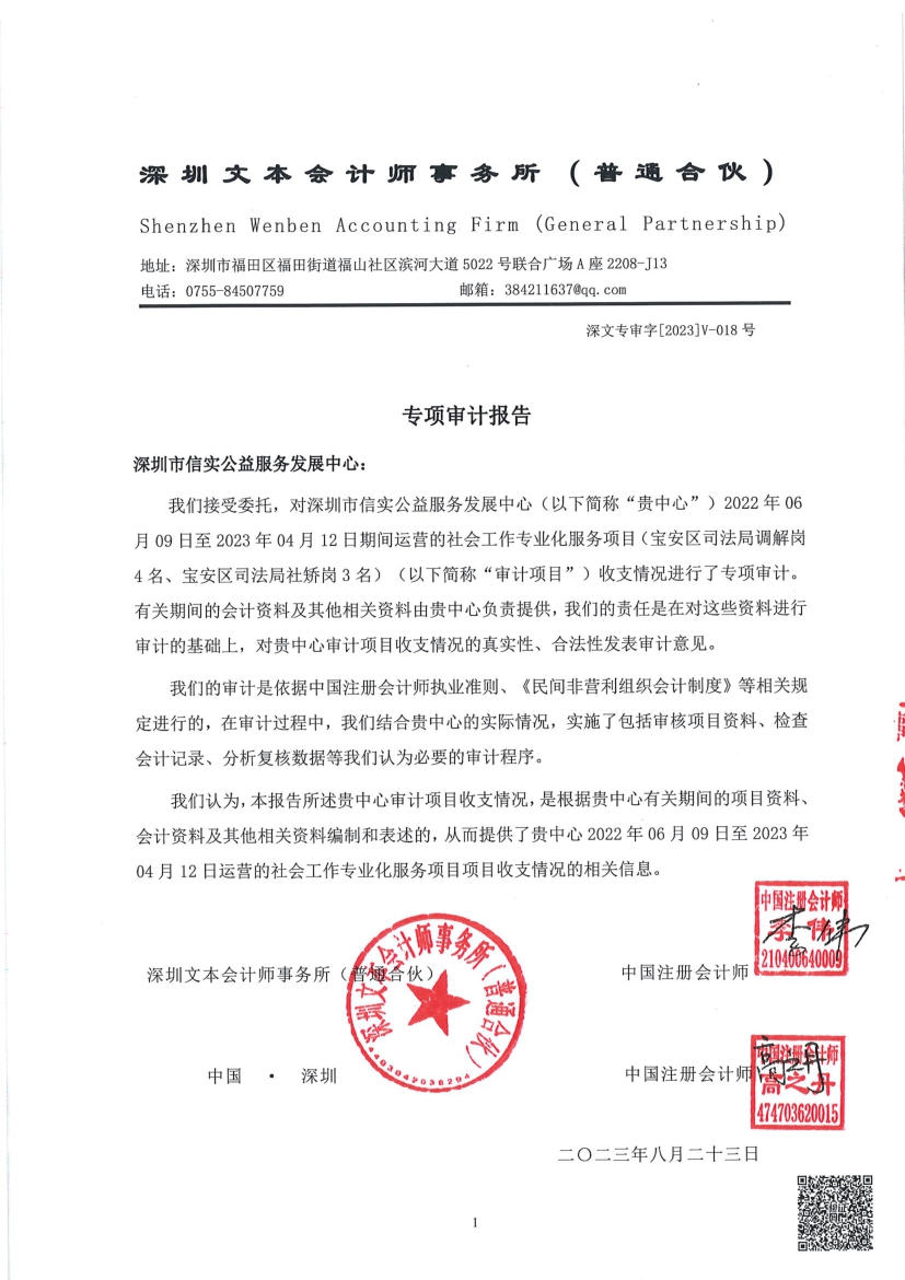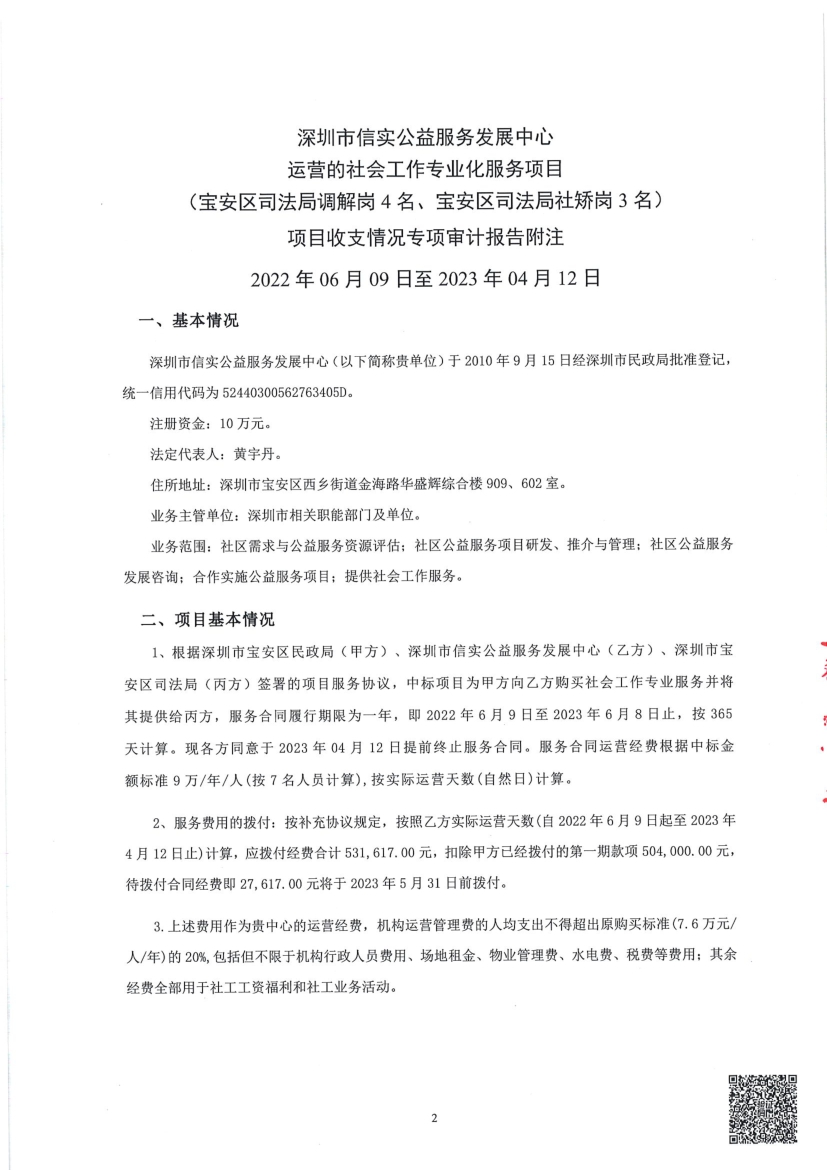 社会工作专业化服务项目收支(宝安区司法局调解岗4名、宝安区司法局社矫岗3名) 情况专项审计报告公示