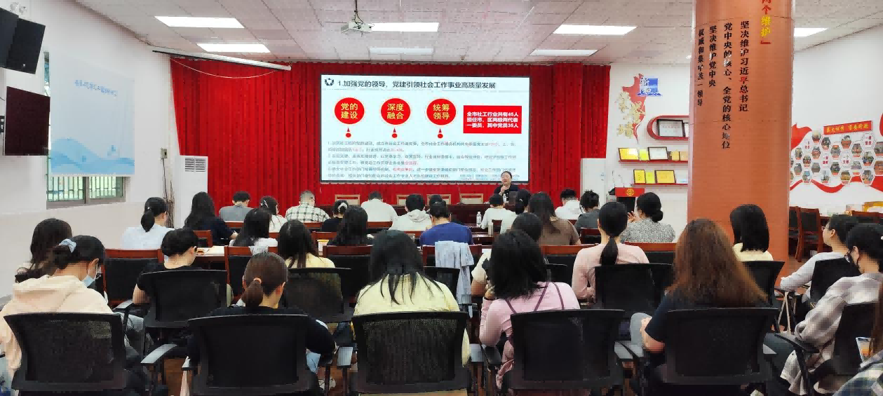 党建引领是社区建设和治理的“红色引擎”。为提升党群中心社工的专业素养和服务能力,使其更好地理解和运用党建工作指导社区建设与治理,2025年4月11日,深圳市信实公益服务发展中心邀请到深圳市社会工作者协会党委书记王越为党群中心社工讲解了《党建工作如何引领社会工作高质量发展》的培训。