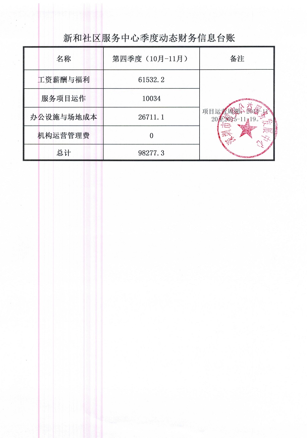 新和社区服务中心第四季度财务动态信息公示